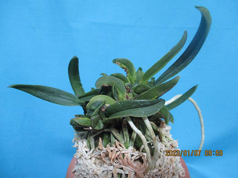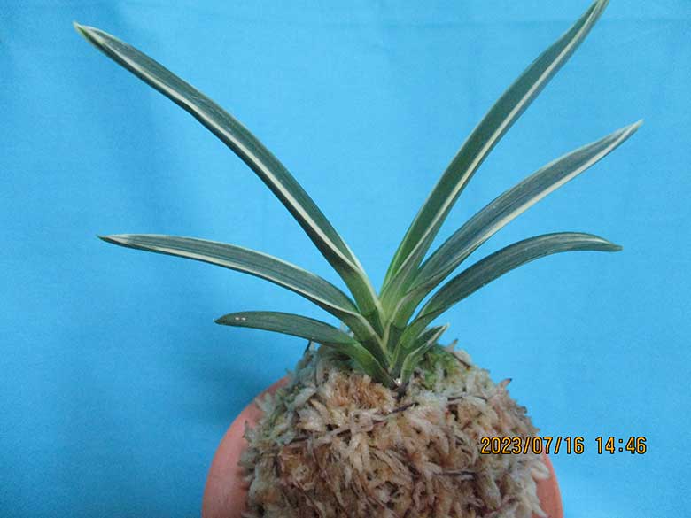 2本仔付。6,5~8,5cm前後葉。大2本仔付。親木、大仔1本には適当に白黄色縞が入っています。ルビー根も交えます。